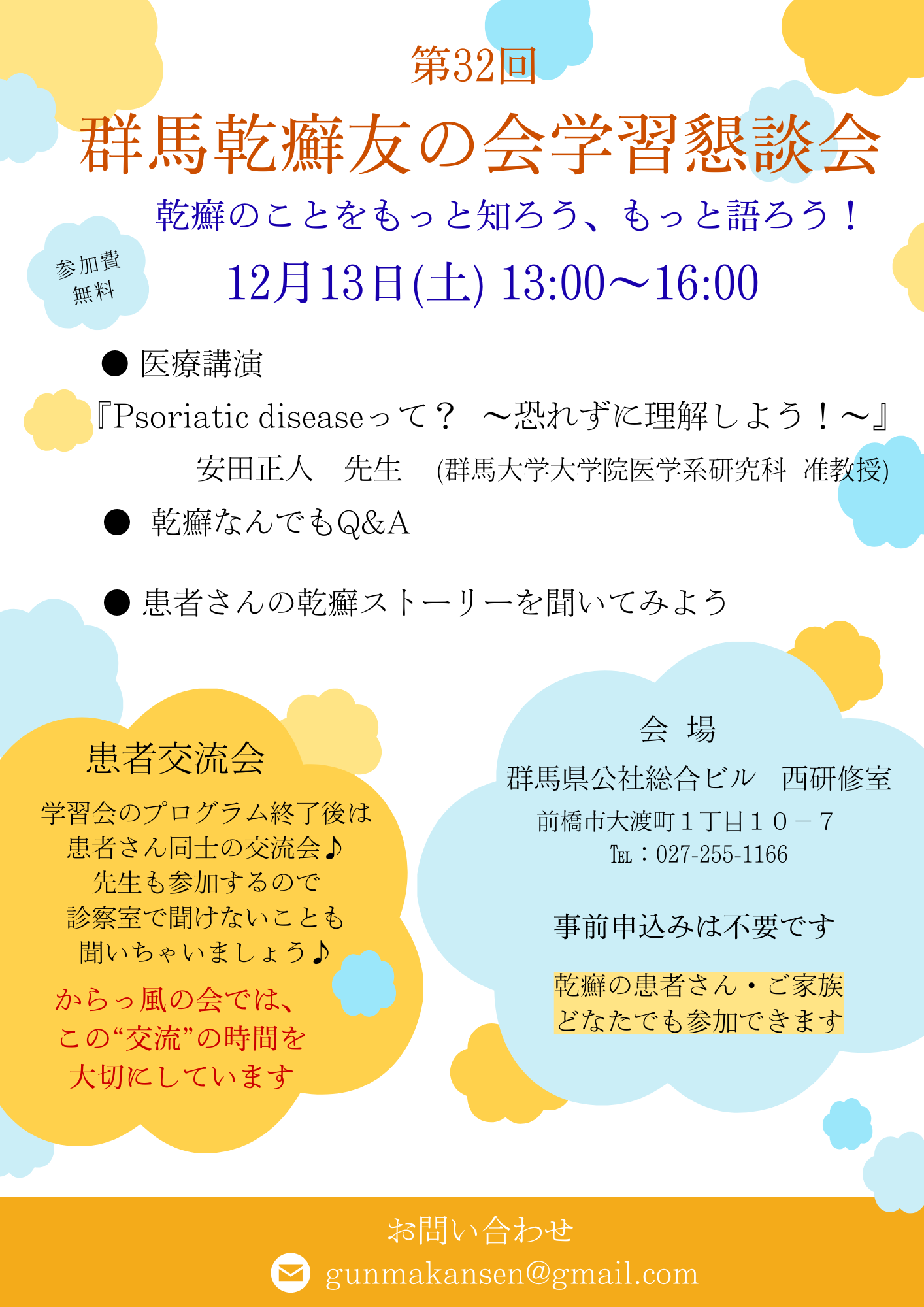 群馬乾癬友の会(からっ風の会) mail:gunmakansen@gmail.com